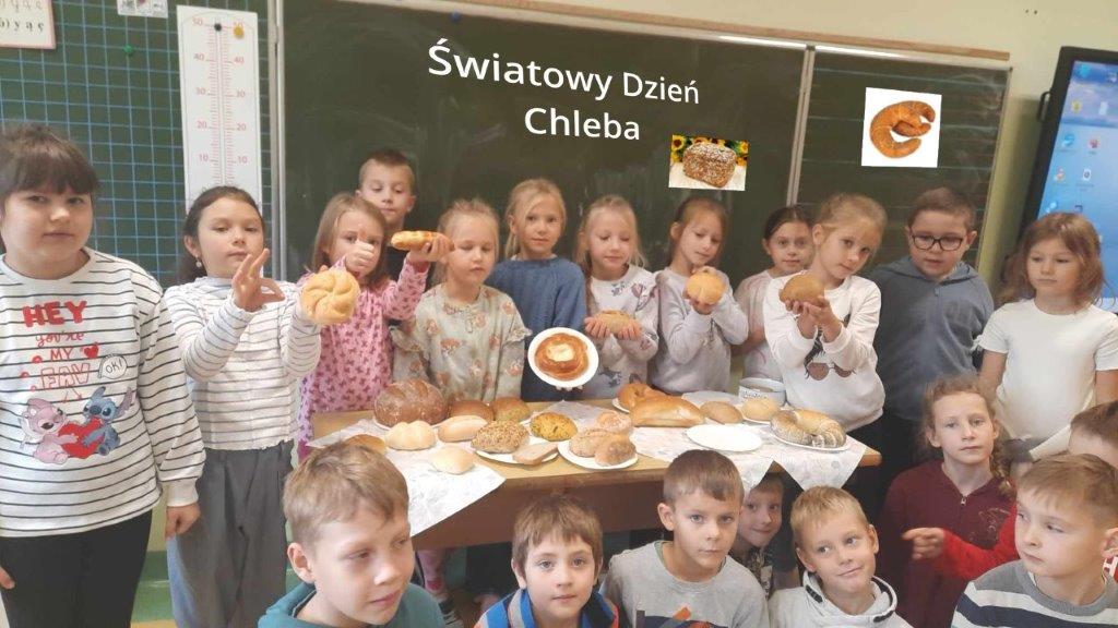 Światowy Dzień Chleba… 16 października uczniowie z klasy 1b obchodzili Dzień Chleba. Dzieci obejrzały prezentację „Jak powstaje chleb” oraz film edukacyjny „Od ziarenka do bochenka”. Podczas zajęć miały możliwość poznać różne ciekawostki tj.