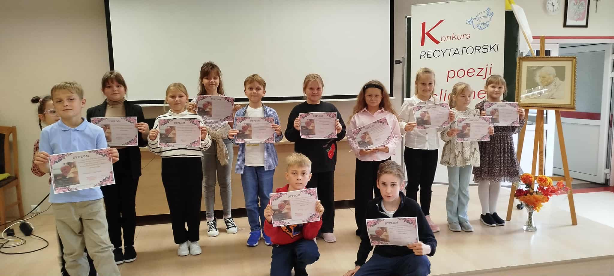 6 października 2025r. uczniowie klas 1-3 oraz 4-8 w ramach Wojewódzkiego Konkursu „Usłysz Panie, moje słowa” zmagali się z trudnym zadaniem: recytacją wierszy o tematyce religijnej. W ten sposób uczcili pamięć o Janie