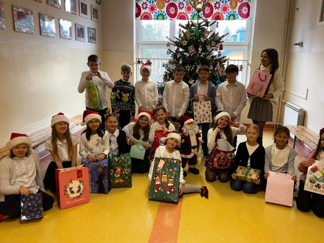 Mikołajki w grupie klas I-III to od wielu lat hucznie obchodzone święto. Od rana klasy i korytarze zaludniają mali pomocnicy Świętego Mikołaja przybrani mikołajkowymi czapkami i innymi świątecznymi gadżetami. Dzieci uczestniczyły dzisiaj w mikołajkowym apelu przygotowanym przez klasy 2b i 2 c, który wprowadził wszystkich w świąteczny nastrój.Mikołaj przypomniał nam, że przychodzi tylko do grzecznych dzieci, więc warto się starać. Były mikołajkowe prezenty, uroczyste zapalenie choinki,🌲 na pierwszym pietrze, śpiewanie świątecznych piosenek, poczęstunki.To był totalnie mikołajkowy zawrót głowy.