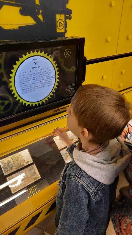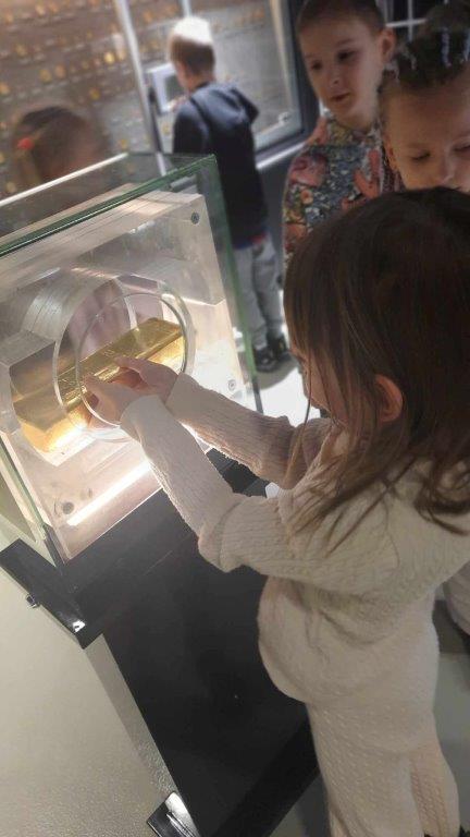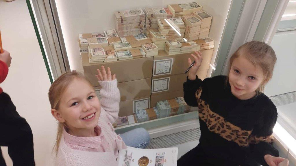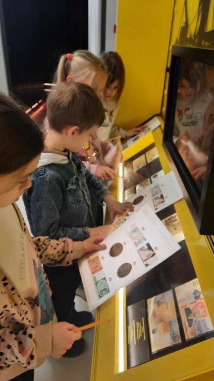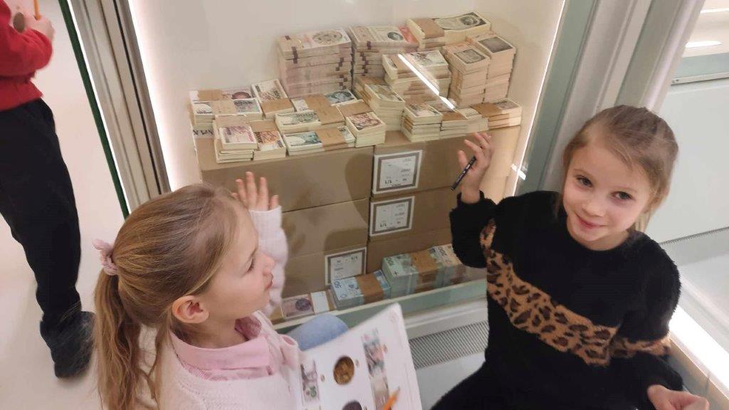 Uczniowie z klasy 1b pojechali na wycieczkę do Narodowego Banku Polskiego w Warszawie. Podczas zajęć dowiedzieli się, w jaki sposób muzea sprawdzają autentyczność starych monet i banknotów, jak należy je przechowywać oraz czy każda kopia jest fałszerstwem. Podczas pracy w grupach dzieci spróbowały ustalić, czy wybrane monety i banknoty są autentyczne, porównując je z eksponatami z Centrum Pieniądza NBP. Z wielkim zaciekawieniem zwiedzały wraz z przewodnikiem poszczególne tajemnicze komnaty…