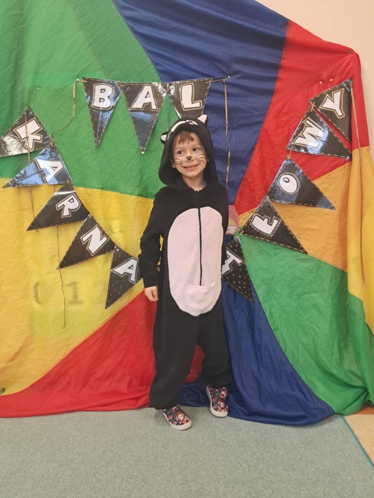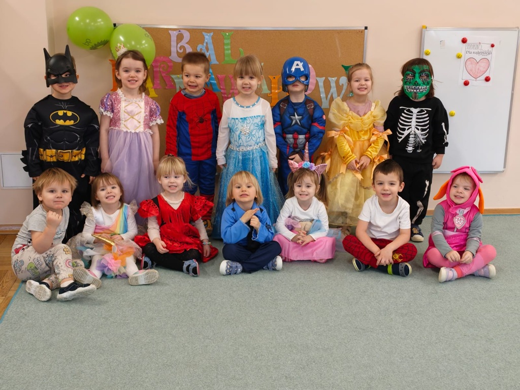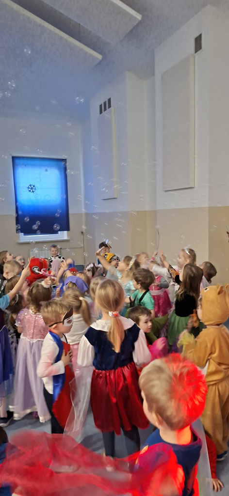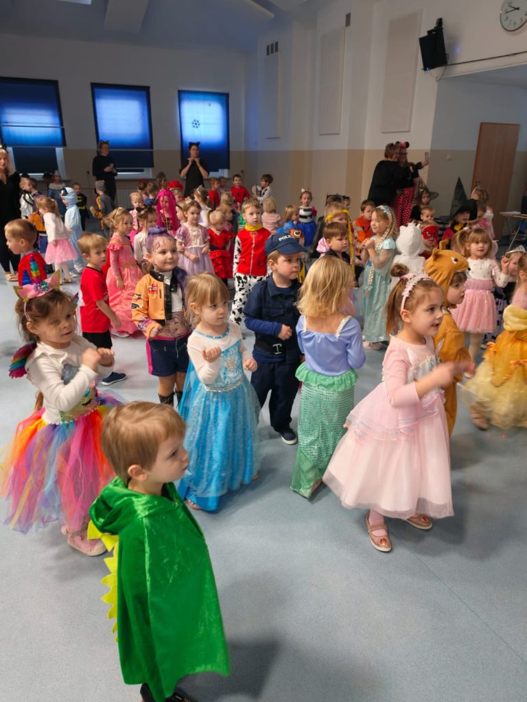 Bal karnawałowy w naszym przedszkolu był pełen radości i kolorów. Odbył się w auli w dwóch grupach wiekowych: dla dzieci 3–4-letnich oraz 5–6-letnich. Przedszkolaki przyszły w pięknych, bajkowych przebraniach i z wielkim entuzjazmem brały udział w zabawach. Wspaniałą atmosferę zapewniła pani animatorka, która poprowadziła taneczne i ruchowe zabawy. Serdecznie dziękujemy Radzie Rodziców za zorganizowanie tego wyjątkowego balu.