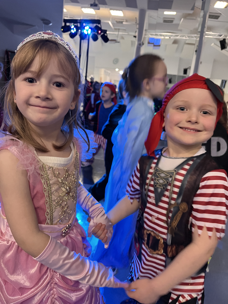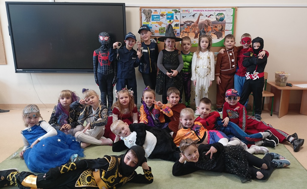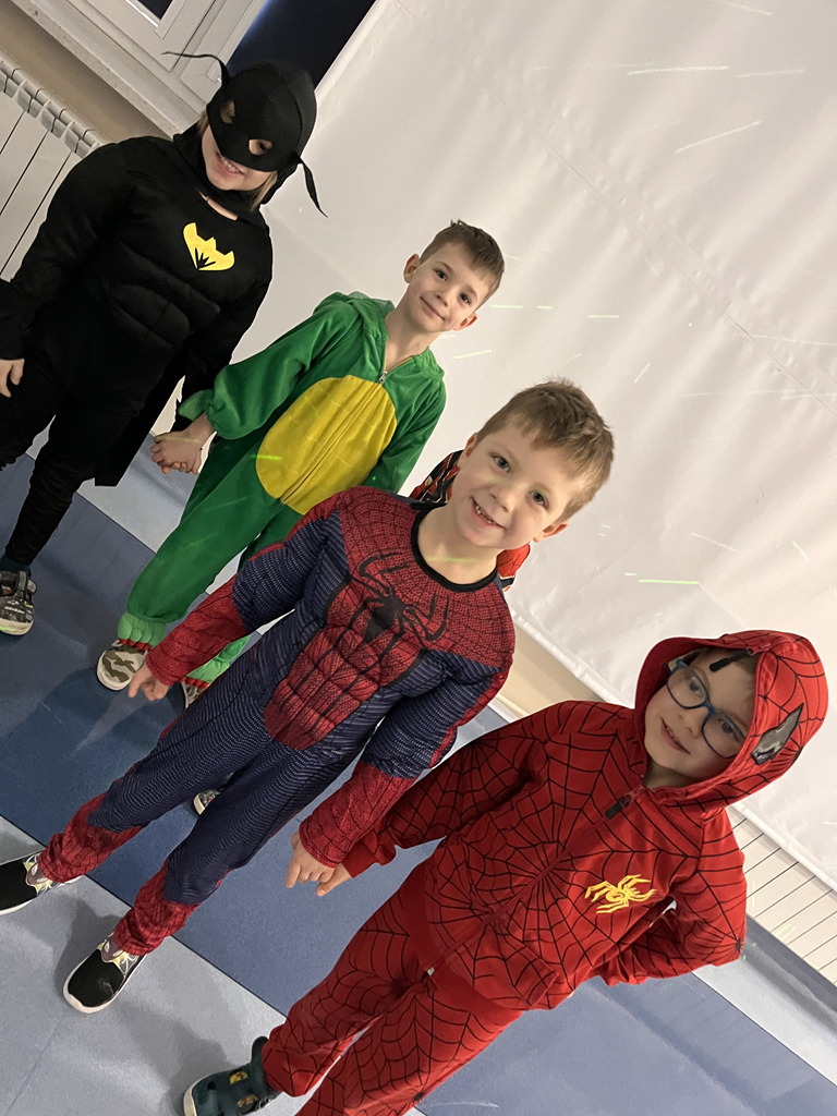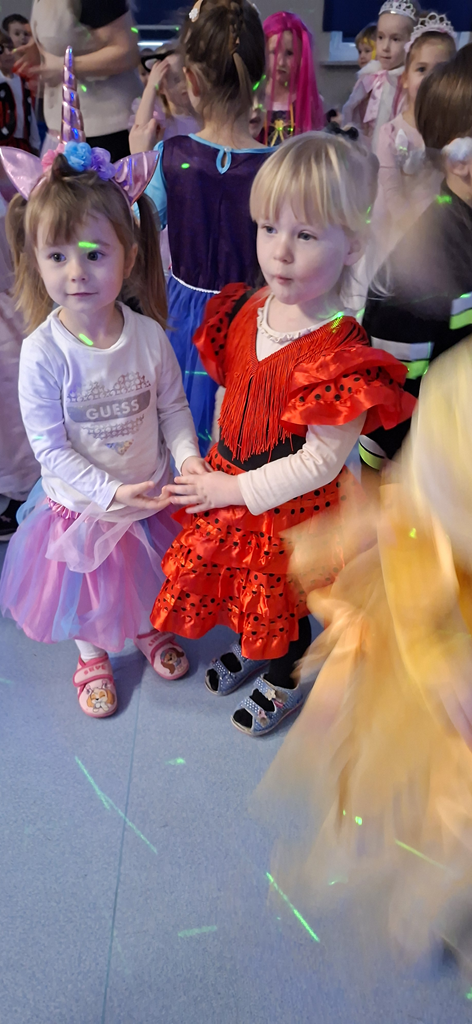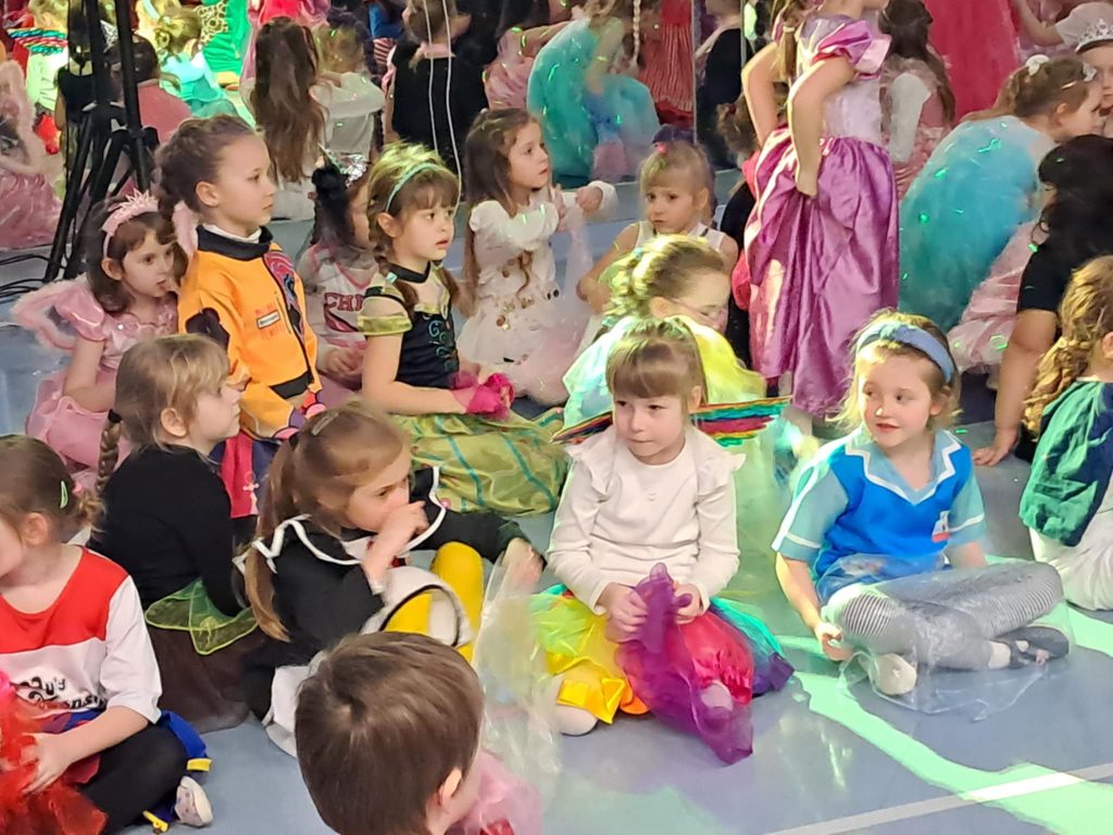 Bal karnawałowy w naszym przedszkolu był pełen radości i kolorów. Odbył się w auli w dwóch grupach wiekowych: dla dzieci 3–4-letnich oraz 5–6-letnich. Przedszkolaki przyszły w pięknych, bajkowych przebraniach i z wielkim entuzjazmem brały udział w zabawach. Wspaniałą atmosferę zapewniła pani animatorka, która poprowadziła taneczne i ruchowe zabawy. Serdecznie dziękujemy Radzie Rodziców za zorganizowanie tego wyjątkowego balu.