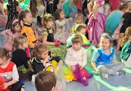 Bal karnawałowy w naszym przedszkolu był pełen radości i kolorów. Odbył się w auli w dwóch grupach wiekowych: dla dzieci 3–4-letnich oraz 5–6-letnich. Przedszkolaki przyszły w pięknych, bajkowych przebraniach i z wielkim entuzjazmem brały