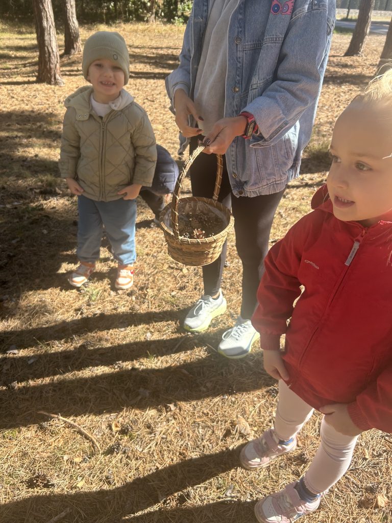 Podczas spaceru przedszkolaki podziwiały różnobarwne liście, zbierały szyszki i kasztany. Dzieci zwracały uwagę na dźwięki lasu- szum wiatru, śpiew ptaków.