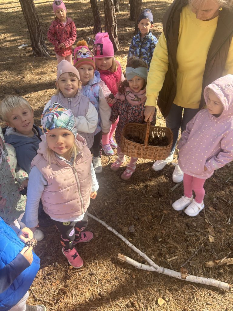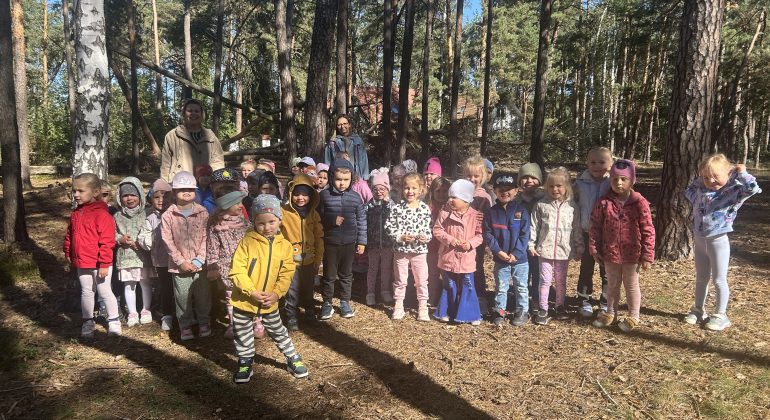 Dnia 25 września 2025r. dzieci z grupy 4 latków „A” i „B” wybrały się na jesienny spacer do pobliskiego lasu. Celem wyjścia było obserwowanie zmian zachodzących w przyrodzie jesienią oraz kształtowanie wrażliwości na piękno otaczającego świata.