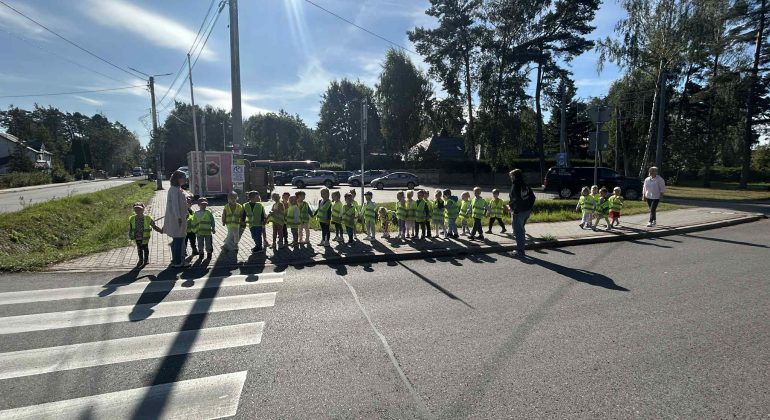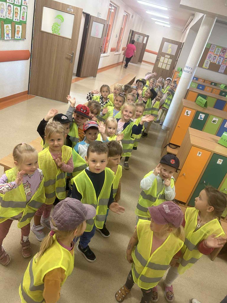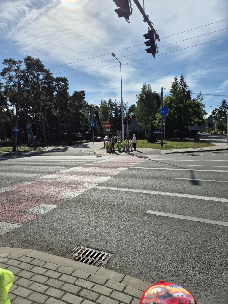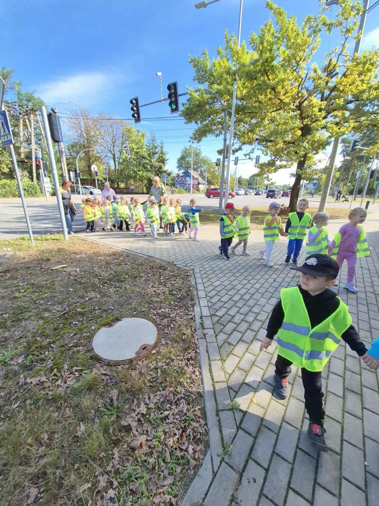 W dniu 17 września 2025 r. dzieci z grupy 4 latków „A” i „B” wybrały się wraz z paniami na krótki spacer edukacyjny na pobliskie skrzyżowanie. Celem wyjścia było poznanie zasad bezpiecznego poruszania się po drodze, obserwacja sygnalizacji świetlnej oraz zachowanie ostrożności podczas przechodzenia przez jezdnię.